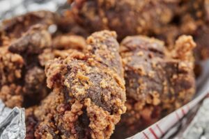 Wedged between the driver’s seat and the steering wheel, the scents of deep-frying and heavy seasoning quickly took over. On my lap, the filled takeout tray commandeered the space. These were whole chicken livers – as crunchy as popcorn and without a speck of grease. It was time to eat.