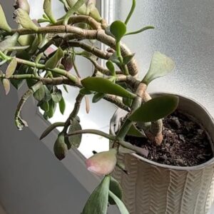 “Their proper name is Crassula, and they are also known as Jade,” I told her, “but we tend to call them money trees because the leaves are shaped like coins. According to legend, if you own a money tree, you will always be wealthy. Has that been true for you?”